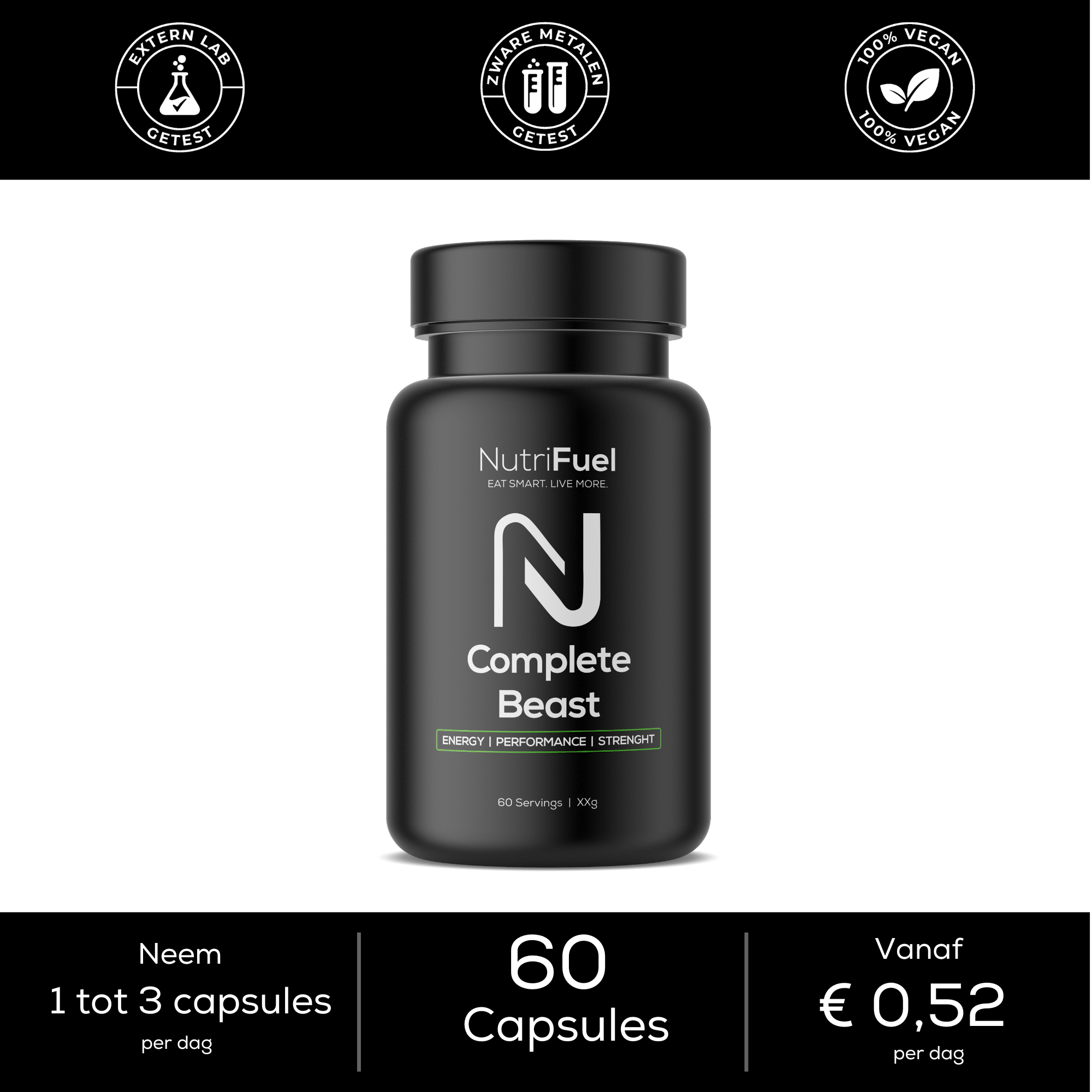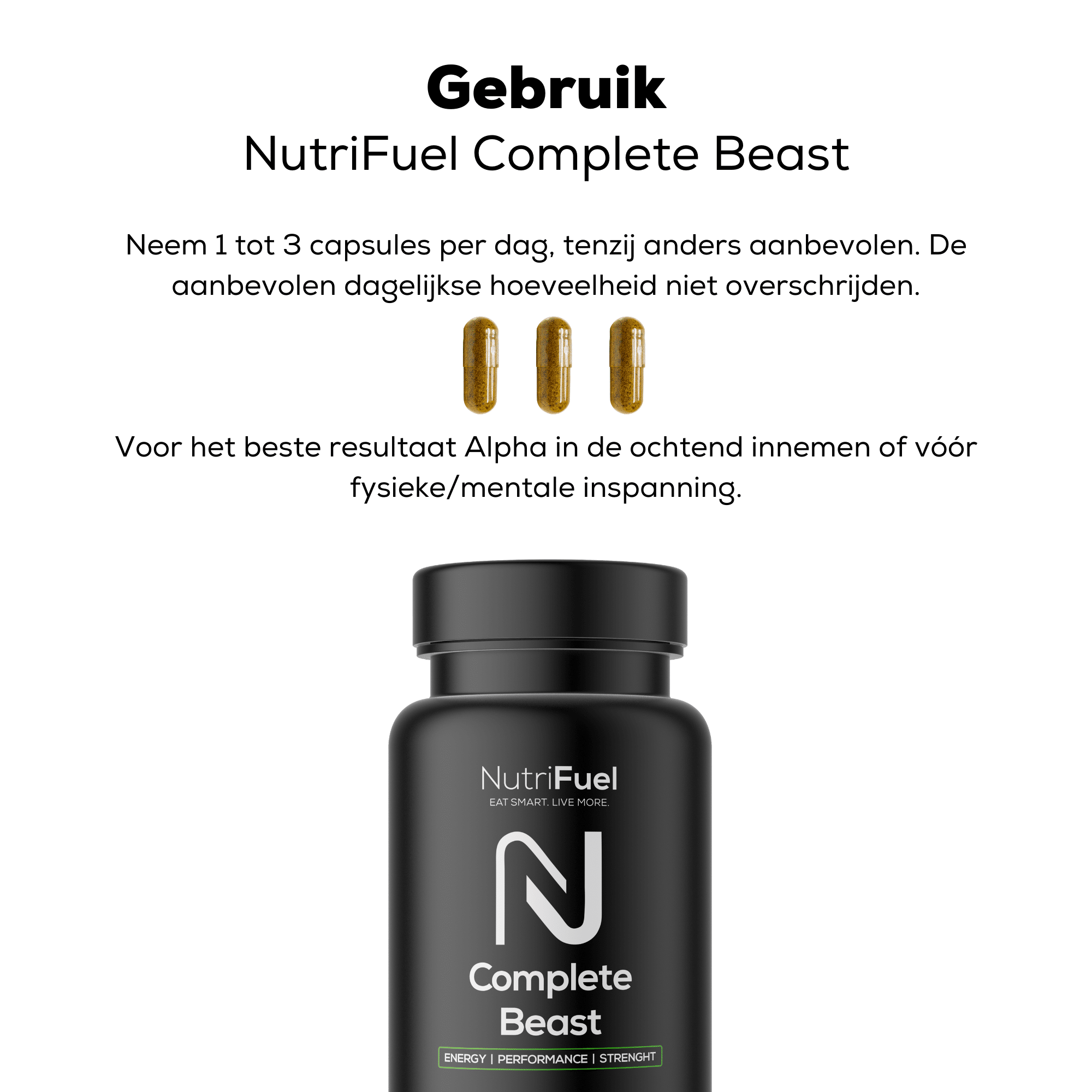Door Nutrifuel Complete Beast 's ochtends in te nemen, profiteer je de hele dag van de ondersteunende werking op je energie en focus.