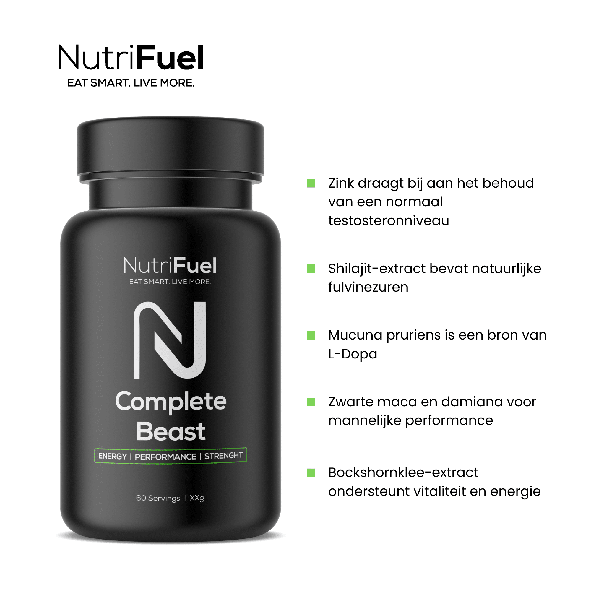 Nutrifuel Complete Beast is ontwikkeld op basis van de nieuwste wetenschappelijke studies rondom natuurlijke testosteronondersteuning.