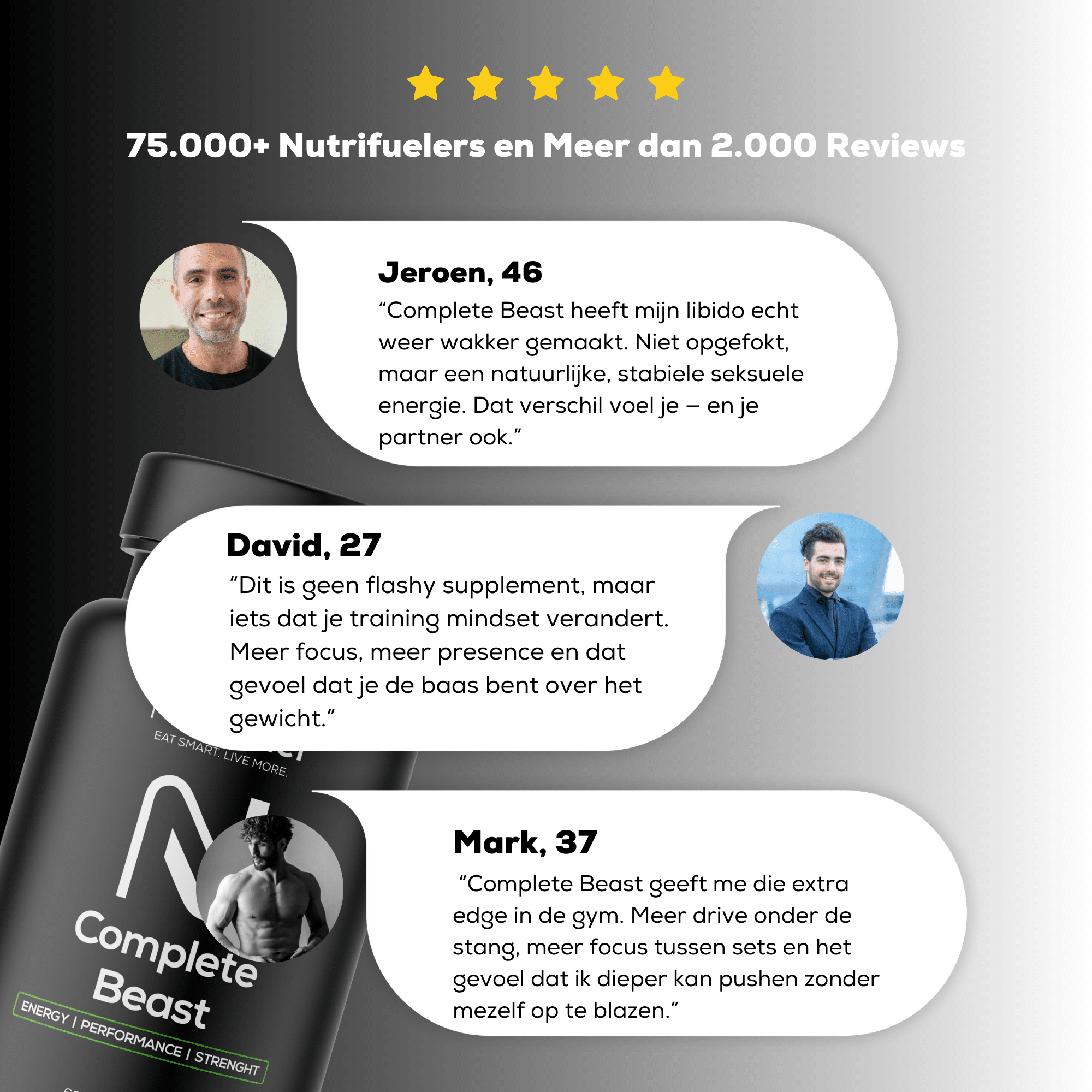 Zodra onze klanten beginnen met het gebruik van Nutrifuel Complete Beast en het verschil ervaren in hoe ze eruit zien, voelen en bewegen, willen ze nooit meer zonder deze doorbraak zijn.