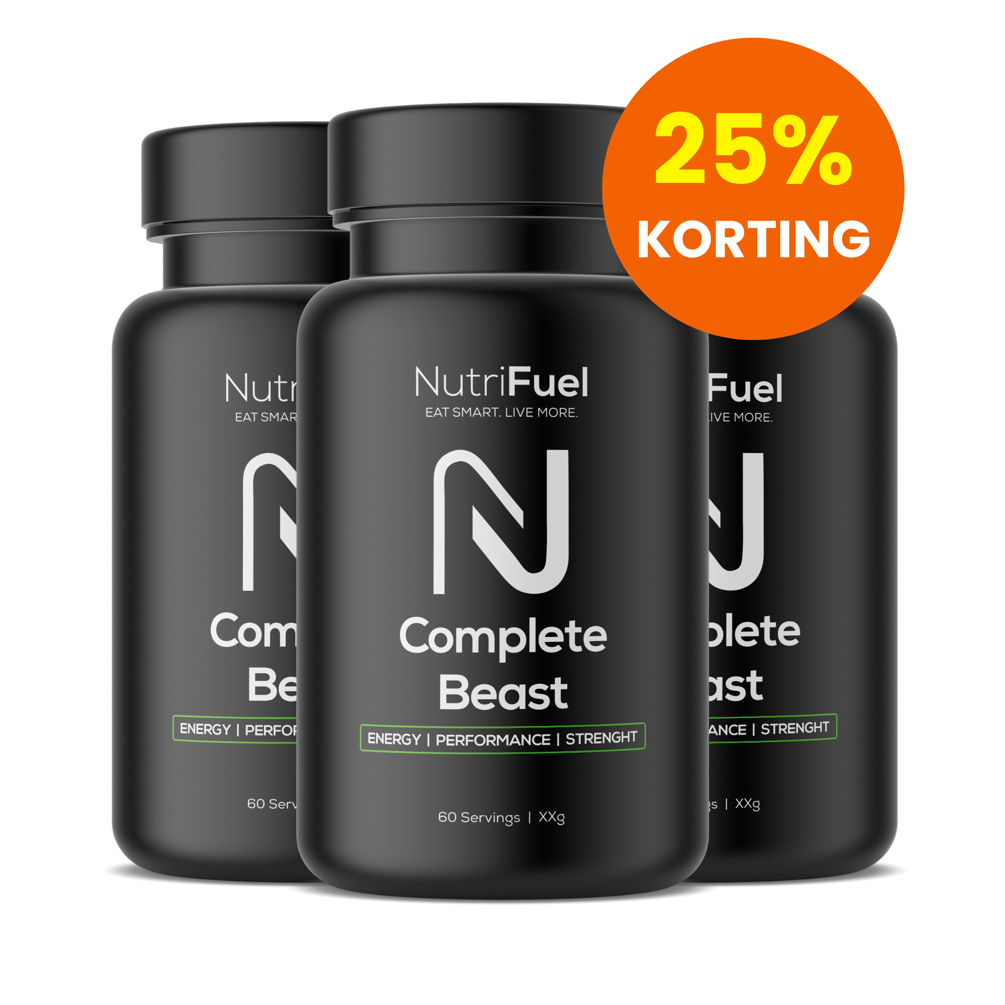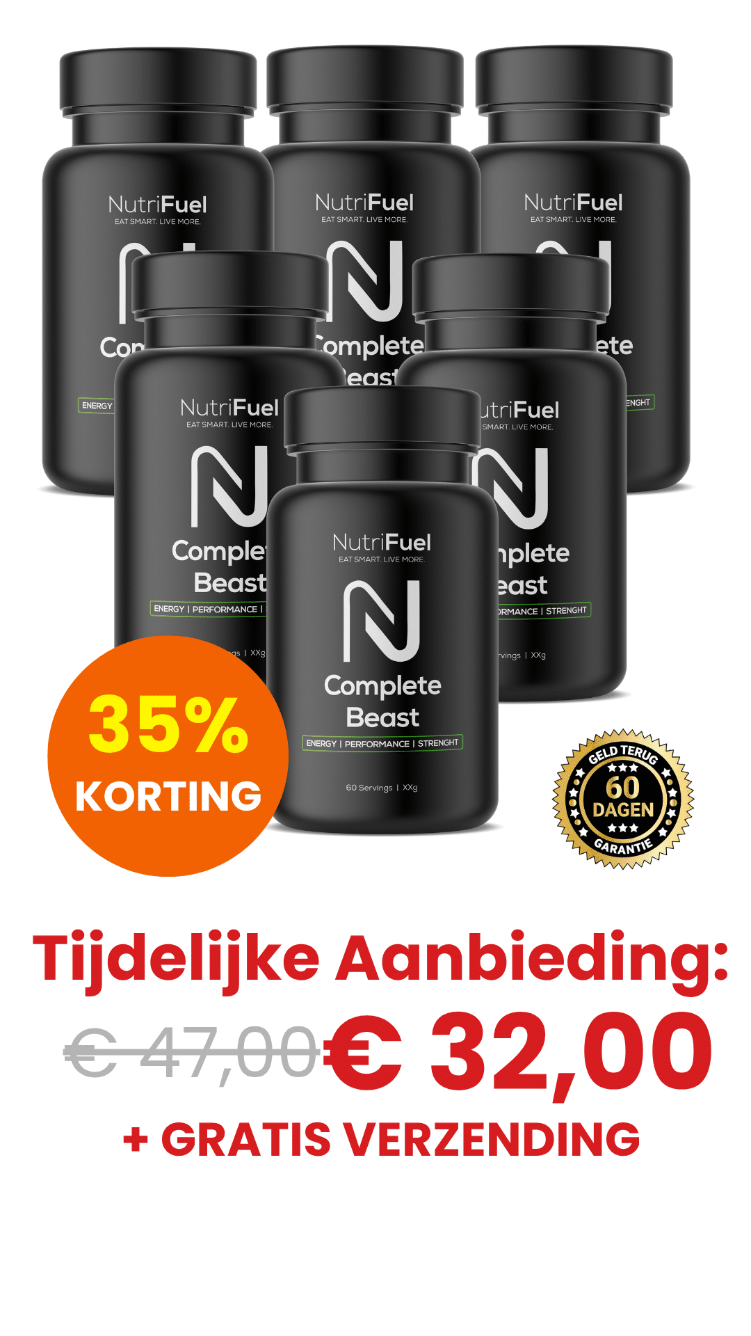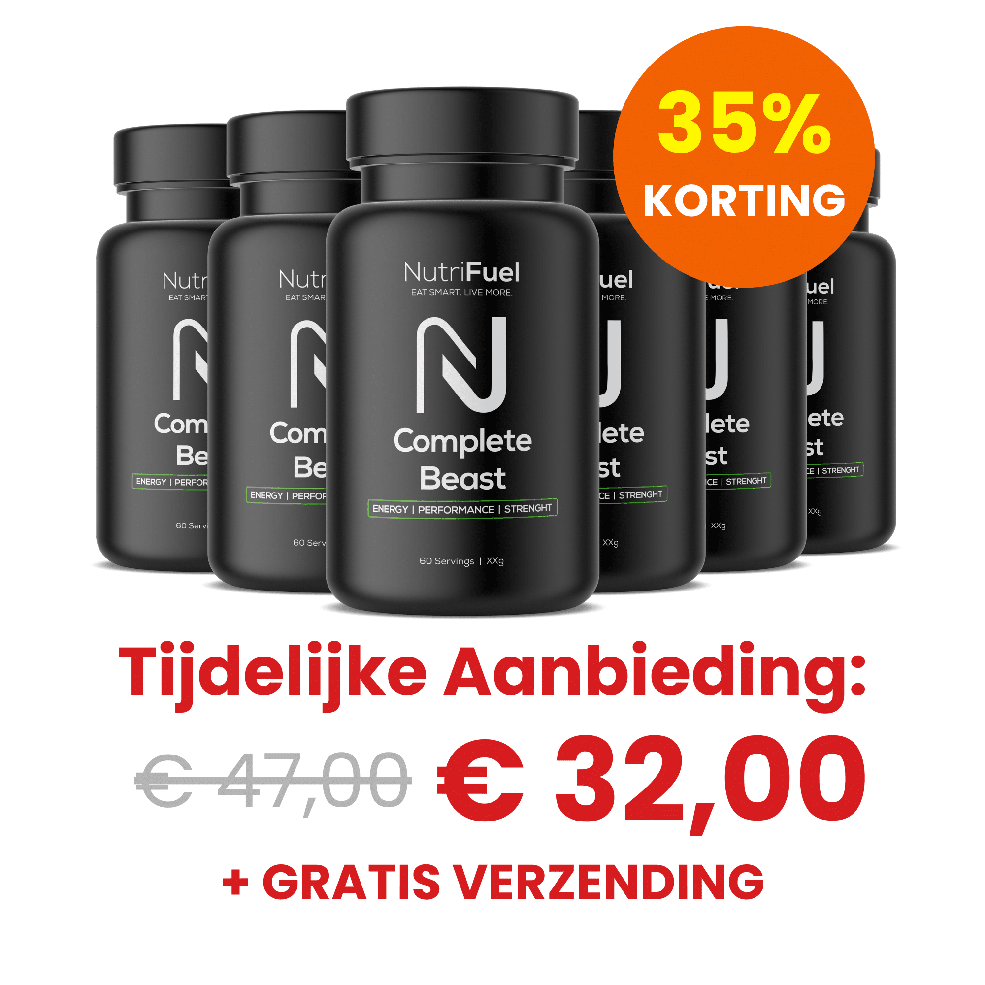 Je korting is al toegepast! Voor zeer beperkte tijd kun je Nutrifuel Complete Beast bestellen met een introductie korting van -35% zolang de voorraad strekt, en GRATIS verzending!