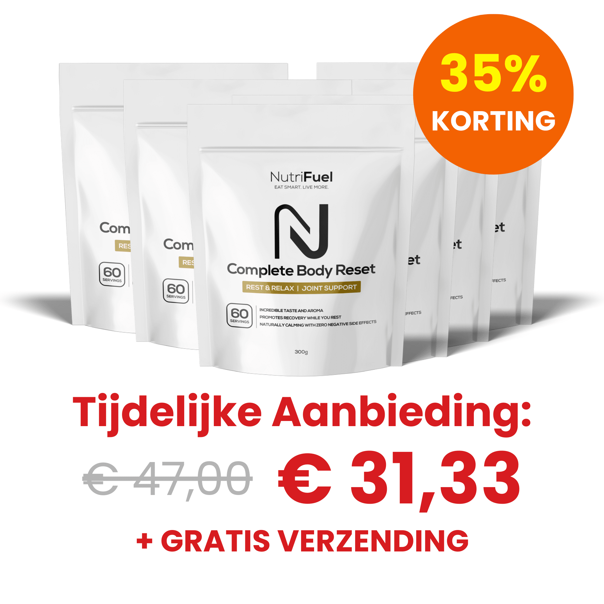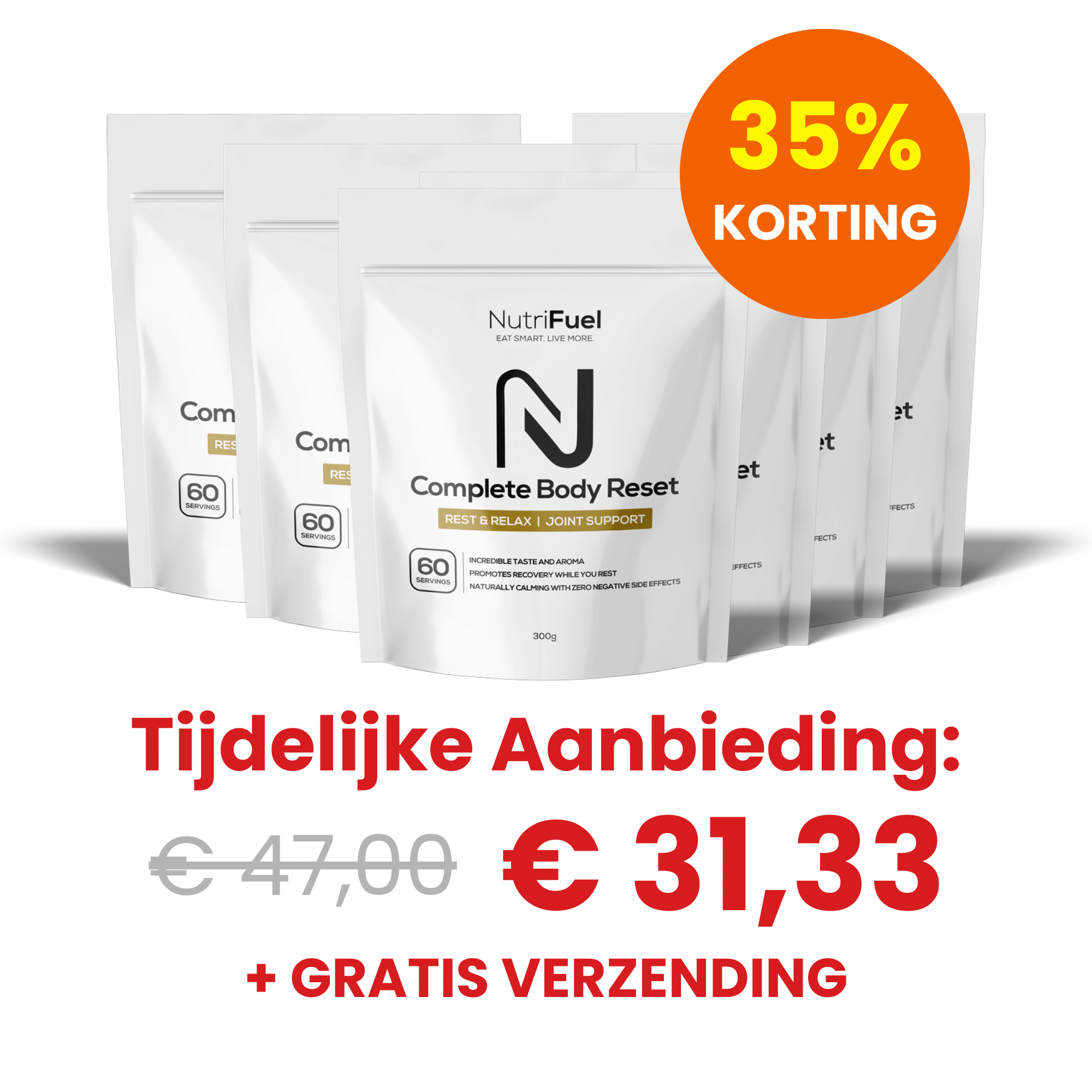 Je kunt nu tot 35% KORTING besparen op onze Nutrifuel Complete Body Reset – en daarnaast krijg je GRATIS verzending.