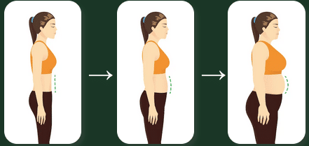 Die extra 7 kilo zitten nu rond je heupen en buik.